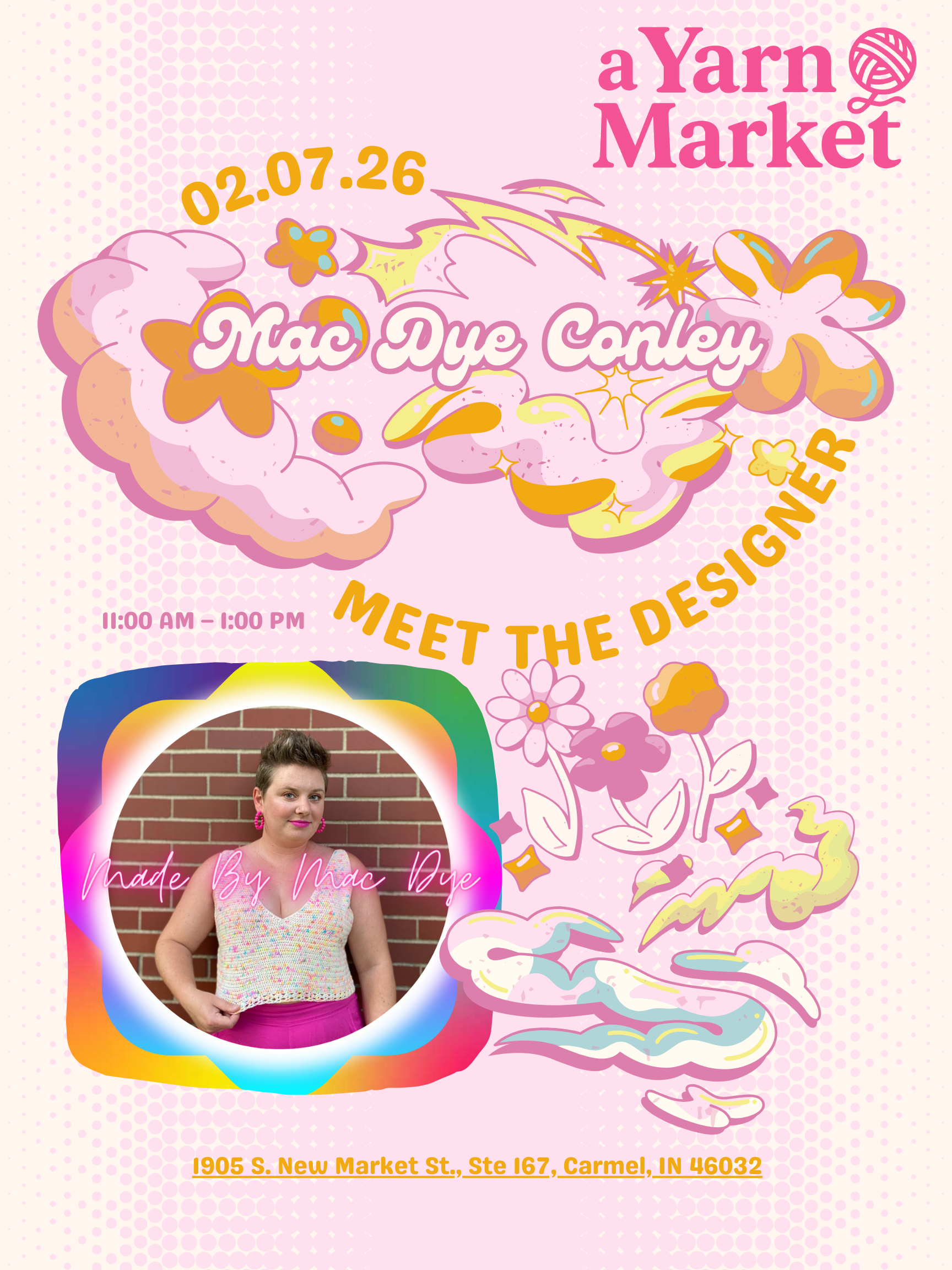 Join us during the Fibruary Indy event and Yarn Crawl with a special Meet and Greet with Mac Dye Conley!