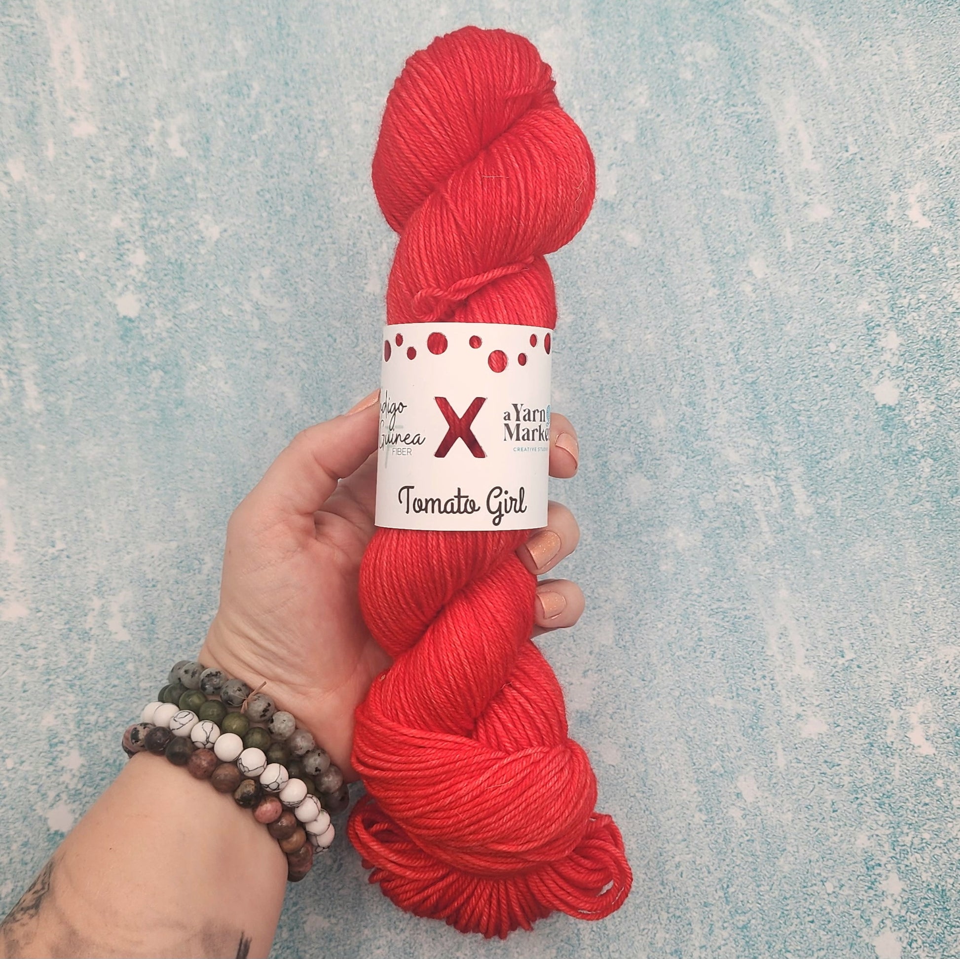 Inspired by sun-warmed gardens and breezy days. This vibrant red yarn brings memories of lazy afternoons and mornings at the farmers' market